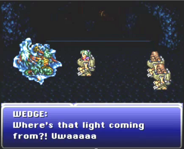 However, the Narshe Mines were being well protected by Narshe's guards. Biggs and Wedge, while being led by Terra, fought through the guards with quite ease to reach the new shaft where the Esper was being held. Before getting there, they had to also battle a monster called Ymir, which was trained by the guards to protect the mine at all costs.