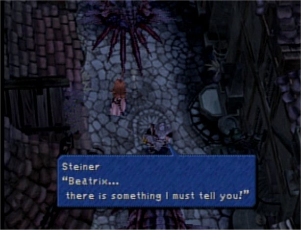 This entire section of the game was very intense. It's the part where Alexandria castle becomes Alexander and fights against Bahamut. But the moments in particular that I felt the most moved by was with Steiner and Beatrix patrolling the streets and fighting the Mistodons.