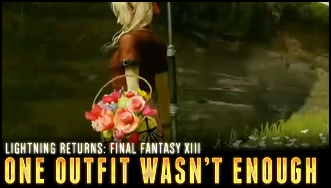 Lightning's "Flower Vendor of Midgar" attire will make her look like Aerith Gainsborough from FINAL FANTASY VII. Complete with a Guard Stick stave as a weapon and a bouquet of flowers in place of a shield you can go around thwacking things in true Aerith style. Much like the Cloud outfit, the Aerith outfit also comes complete with a unique victory pose and theme.