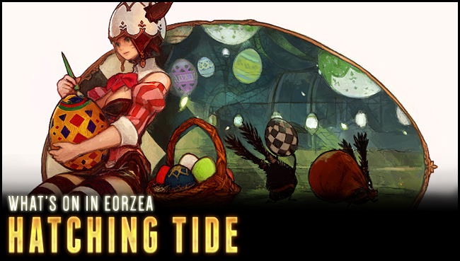 Hatching Tide, is a celebration of friendship and comraderie. The tradition itself can be dated back to before the events of the fateful Seventh Calamity. An eccentric Miqo'te named Jihli Aliapoh is said to have been visited in her dreams by the Twelve Archons of eld, descending from the heavens atop beautifully bedecked eggs. They spoke unto her a declaration of their return, and she now works tirelessly to see her dream someday turn to reality. Each year countless eggs are gathered and painted in an array of colors with splendid patterns. Though most serve merely as decorations about town, a select few chosen by Jihli and her Dreamers are reserved for Hatching Hour, a grand ceremony in which the chosen eggs are used to summon the Archons back to Eorzea.