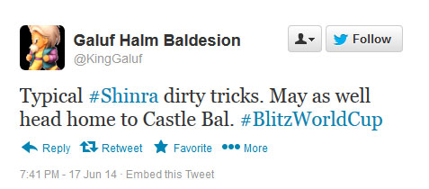 Elsewhere in the tournament, following a colourful opening ceremony where Lady Yuna burst forth from a chocobo egg to perform her hit single “Real Emotion”, hosts Final Fantasy VII managed a 3-1 win in their opening game thanks to two goals from poster boy Cloud Strife, but controversy clouded the game against Final Fantasy V when several dubious refereeing decisions went the way of the Meteors. Final Fantasy V Captain Galuf was suitably angry, taking to Twitter to claim that Shinra have too much influence.