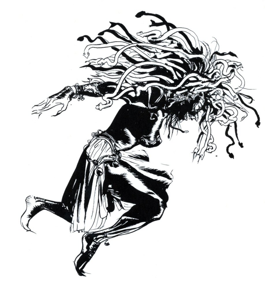 Medusa and her sisters fled Greece, as they were not only shunned for their unsightly appearance, but because their petrifying gaze left a trail of victims wherever they went. The legend has it they escapped to Africa, where as the count of deaths began to rise, the disdain for the Gorgons multipled. This lead to a turn in their personalities, a reflected hatred fitting their outward appearance.