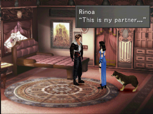 Even though dogs are generally still seen as the protectors of their human companions, which we see in the relationships between Shadow/Relm and Interceptor in Final Fantasy VI and Rinoa and Angelo in Final Fantasy VIII.