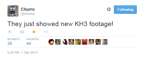 Our friend, from our Project <3 prank, Churro over at KH Ultimania live tweeted the event and shared the details about the Kingdom Hearts 3 exclusive look. The new footage showed concept art, new Heartless designs, a huge town titled Cable Town with Sora in a library/study room and new gun Keyblade attacks for Sora. Sora was shown in various Kingdom Hearts II outfits including Valor and Wisdom form. Sora's Keyblade new attack was the keyblade turning into dual guns that can also transform into a cannon. Chi was also written on a blackboard in the study room. It ends with "More Kingdom Hearts info will be revealed in 2015."