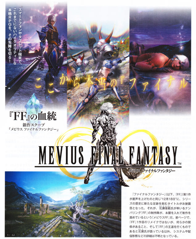 The original creator of Final Fantasy, Hironobu Sakaguchi, and the current lead producer, Yoshinori Kitase, announced in an interview with Famitsu a new original Final Fantasy entry that goes back to the series roots. That game is titled Mevius Final Fantasy.