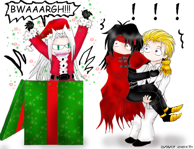 “Sephiroth?” the figure said. “I’m not Sephiroth, I’m Sephy Clause!”
