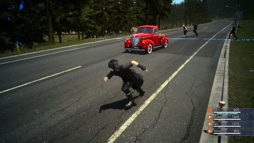 Clamber to the top of the rock formation shown using O or B to jump. You'll want to be at the top as otherwise your party will gather by the fence and distract the cars. Cars will come by every two minutes during the day.