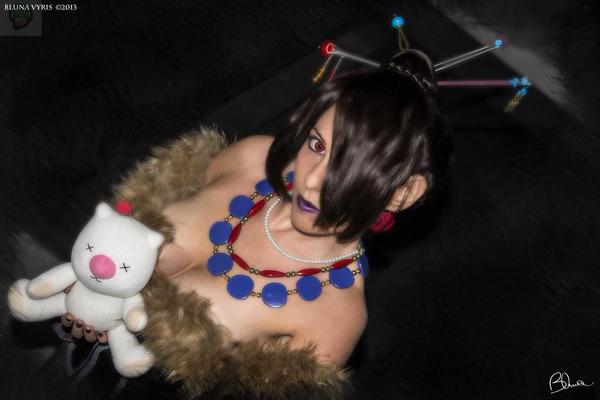 Beautiful cosplay of Miss Lulu from Final Fantasy X, complete with Moogle doll!