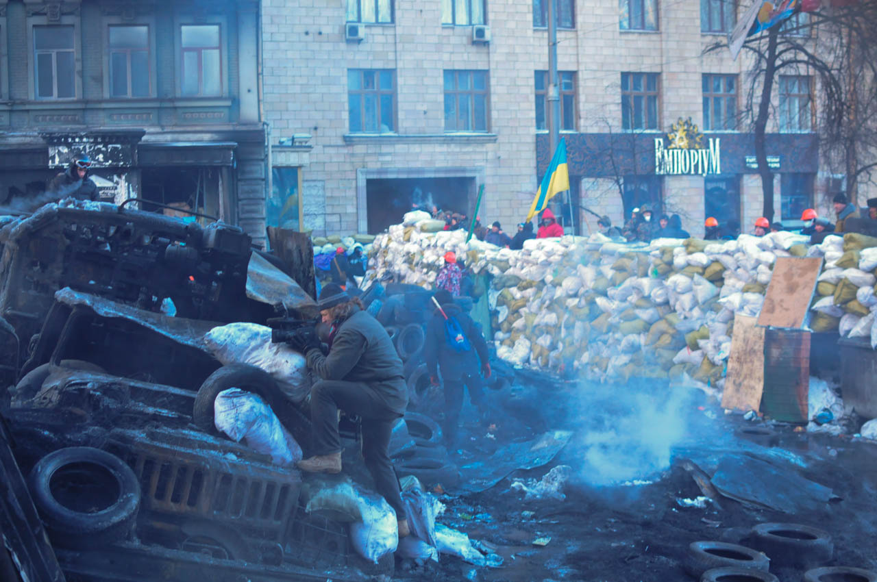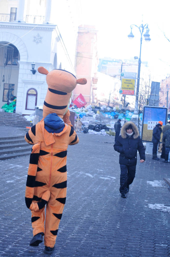The whole central square of Kyiv, Ukraine has been turned into a city of tents. Fires are burning in barrels to keep the people warm, as it's -20C during the day. Food is being handed out by volunteers. Politicians hold speeches on the stage. A big screen is covering the side of a building, providing video of the screen to everyone in the crowd. Having just flown in from Bangkok, I try to find a place to sit down and figure out what exactly is going on.