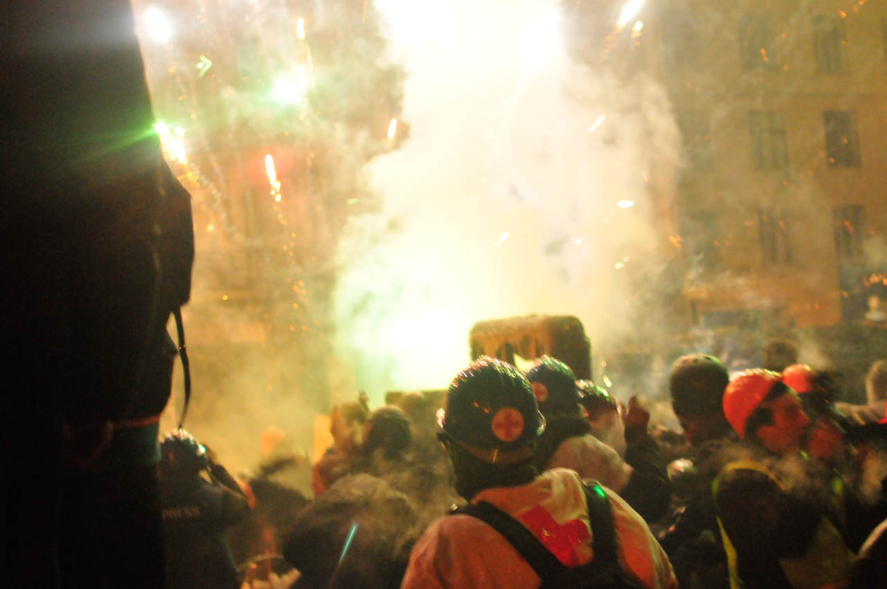 The whole thing goes on for over eight hours. It’s getting boring because the cops aren’t responding. Apparently, they’re only up for attacking people when they’re unarmed. Around 5 AM, I decide I’ve had enough, and go to sleep in my hostel. Awaiting the next big event, hoping for more clashes between protesters and police.