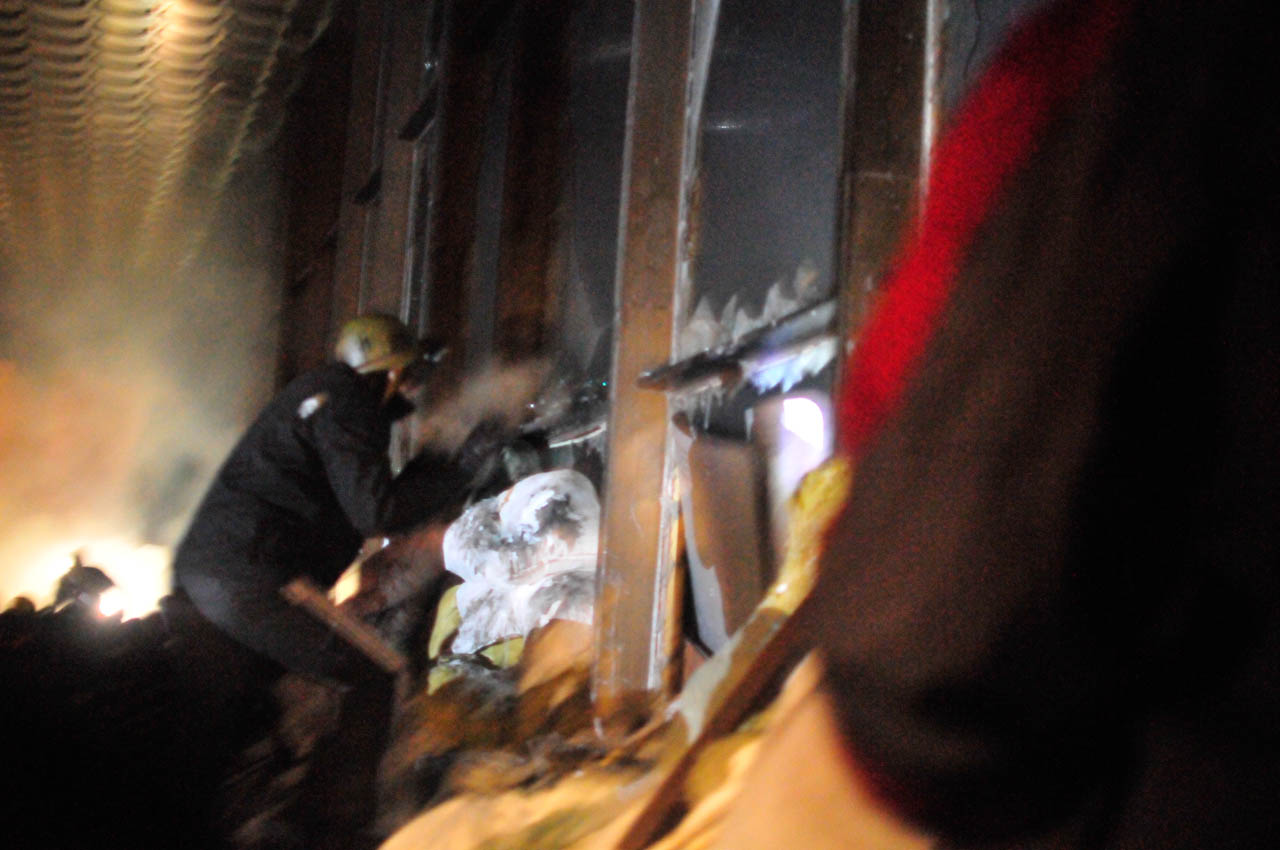 The next day, a group of protesters has a big conference building, the Ukrainian House, surrounded. Inside are about 100 of the 'Berkut' riot police.