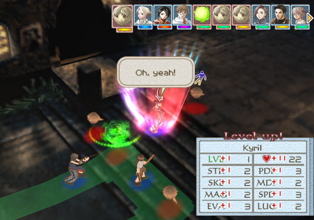 Besides a huge chunk of new and old runes coming back, the game also brings back Suikoden III's skill system. It has been overhauled to be far more balanced, and feels a bit closer to the new skill system added to the remake of Tactics Ogre on the PSP, in that most of the skills are absolutely imperative to success in the game as having low accuracy or critical hit scores can spell the difference between being a force to be reckoned with on the battlefield or a complete liability. Unfortunately, unlike Suikoden III and frankly the main line series in general, leveling up characters is pretty time consuming int his game and while there are plenty of side missions and quest to do so, its still daunting with a cast of around 40 playable characters to fully outfit and level properly.This kind of brings me to some of the game-play's biggest Achilles' heel in terms of some bad design choices that do more harm than good. The first issue is the heavy handed segregation of the games unit types. There are three unit types characters are categorized into. Melee, Mage, and Support. The first two are pretty self-explanatory but; support classes can't use magic or fight in battles. Instead they have supportive or non-combat roles which range from pure healers like the two doctor recruits, to stat boosting or item mule. The most important one is probably Rene who was attached to a treasure hunting mini-game in Suikoden IV. In this entry, she has a similar role, basically being a unit who can find hidden items on the map. She's actually very important for a few missions involving the game's big optional dungeon. Support units are not the problem is, it's the heavy segregation between Melee and Mages from what what most players know from the main series. Basically, in the main game, outside of available rune slots and weapon specific runes, you had free range to equip a character with any rune and many characters often fell into a red mage style classification. In this game, the only magic rune melee classes can use are the Elemental weapon runes which simply add an elemental property to their weapon or give them defensive bonuses against certain elements. Likewise, Mages are the only classes that can use actual spell runes. Where the problem lies is that his seriously hurts a chunk of the recruitable party. While Suikoden IV is hardly the worst offender of this issue, the game has a serious overabundance of 1h sword users as recruits, and their weapon specific Viper Rune is garbage. This leaves a lot of these characters kind of feeling like a copy/paste job and when I get to the later issue, you'll see the real issue here. So unless the character is fortunate to have some good Buddy partners or happens to be one of the rare characters who can use the Mount creature runes, these characters tend to be all the same in their builds with a few minor exceptions. These guys make up a rather large portion of the recruitable class so its easy to start ignoring a lot of them since most players will likely just stick to the early ones since they've had more time to be leveled and geared properly. What's even more annoying is if you usThe true issue with the game is perma-death and its poor execution within the game. You can tell the devs were looking at Fire Emblem when making this game. I have no real problem with perma-death the issue is that it only affects non-story characters. Plot relevant character can never die, and you get more than you need in this game to make a full team. Now there is a skill that lowers the likelihood of a character ding, but that uses up a precious skill slot that story characters can use to make themselves more powerful. So yeah... what's the point in recruiting a large cast of samey style characters who can always be potentially killed when the game hands you a dozen overpowered story characters who can't? Even worse is that the game's two hidden characters being Lazlo from SIV and the Quest Guild leader are horribly overpowered and also have perma-death immunity. Seriously, once Lazlo is recruited, there is never a reason to have him leave the team. His true rune is a beast, and unlike other melee characters, he can still use the magic from his run like in the main game, though he still can't use other magic runes.Another minor gripe is the VA work. While most of the original cast return for better of for worse, Konami of America definitely cut some corners here. Kyril is voiced by Mona Marshall, who is a very talented voice actress who also voiced Izzy on Digimon and Musashi in Brave Fencer Musashi. She often voices young boy characters. Works great in the first third of the game when Kyril is a little boy, feels a bit awkward when after the time skip, he sounds like he hasn't had puberty yet. Again, a minor gripe, but it does get irritiating since he talks a whole lot more more after the time skip. Another minor gripe is that Kyril gets aserious nerf in the game for story reasons. Now, I'm usually all for these kinds of things, but here it does challenge my views on it. Due to the trauma from the end sequence of the child era, Kyril can't bring himself to kill the Fish people. Okay legitimate excuse. Problem is, the game loves to use this enemy type and as traditional of this genre, landing a killing blow grants more XP than just damaging them, so Kyril finds himself in some leveling issues at certain points of the game becomes a bit of a useless unit when you get stuck fighting a whole map of these enemy types who are exploiting elemental map effects to regenerate generous portions of their health back. It can be useful for leveling up new recruits, but as I mentioned before, XP doesn't go as far in this game like the main line series. So yeah, a lopsides gameplay that has you recruiting characters you'll likely ignore over the main cast who can't ever be killed, and a story that sticks to the more ridiculous elements whiel kind of sidelining the better B plot largely hurt this