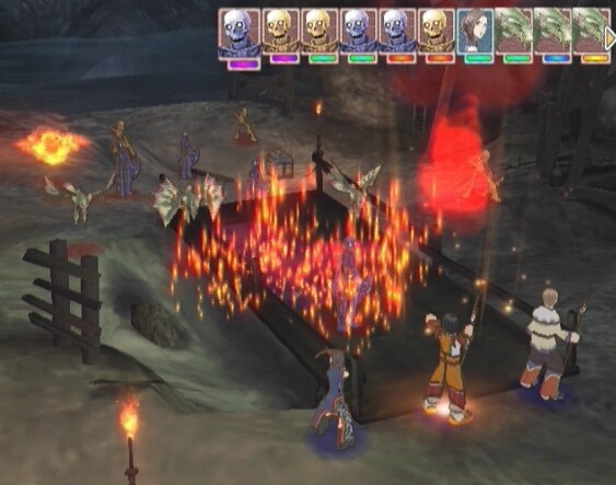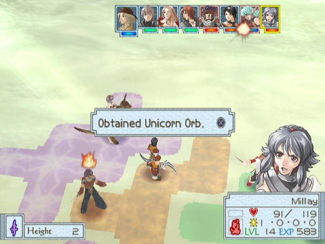 The biggest addition in the game is the element system, which is easily the most important tactical tool at your disposal. Every character and monster is aligned with one of the series six main elements. Using magic or certain co-op attacks can endow the map with one of these six elements. If a character of the same element is standing on these squares, then they get an overall boost to their attack and defense as well as a regen effect at the end of battle. If they are the opposing element, well obviously the opposite happens with a stat debuff and poison effect instead. So a huge part of battle is trying to control this element field effect. Most runes now offer an ability that simply changes the tiles around a character to the runes element affinity, and bosses can be won or lost by not paying enough attention to this. The computer A.I. is very quick to abuse element field effects as well and I don't need to tell you that a boss with hundreds of HP getting 10% of their health back every turn is a bad thing. There are also special wisp enemies who are simply a moving spiritual embodiment of these elements who change the tiles field effect wherever they move, so keep an eye on them, especially since killing one will have them explode and change a huge chunk of the map to their element. Runes have also been expanded for melee classes as most runes now have three skills instead of just one and if you want to see the real Falcon Rune, you'll need to keep Kika properly leveled to unlock that third skill slot. These expanded abilities give the classes a lot of options for the most part with a few glaring exceptions. Spear and Archer classes are especially wrecking balls in this game.