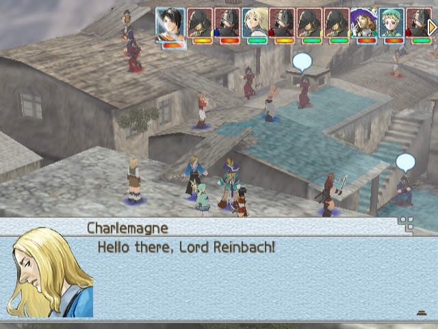 The game also took some notes from the reception of SIV and brought back a huge swatch of Runes from the earlier games, finally giving the cast of characters more personality. In addition the rules of the genre helped to really give more meaning to characters based on their weapon and class types with melee and mages having a more distinct split and different melee weapons having more nuance and use with spear users having range advantage, axe/greatsword users being slower and having lower accuracy, and single sword users being the basic generic unit that's good at everything but excels at nothing. Once you really start recruiting people and playing around with them, it becomes really easy to see how perfect Suikoden is for this genre. As a side note, this game also brings back one of my favorite fetures from the early games and takes Suikoden II as the best example. You can load a Suikoden IV safe file into the game to get a few bonuses, the biggest one being bale to recruit the main hero of SIV, Lazlo into your party who has his game breaking True Rune. You also get Snowe but not every Save data thing is a winner.
